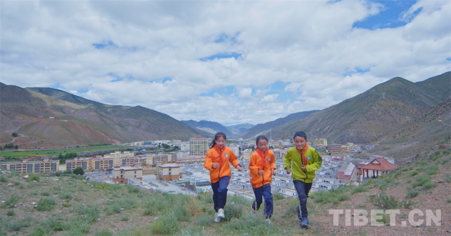 圖為昌都市洛隆縣的小學(xué)生在學(xué)校的后山玩耍