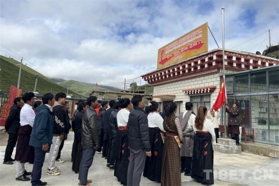 在洛隆縣色底村的卓林夏季牧場,240多名色底村黨支部和駐村工作隊全體黨員黨員面向鮮艷的黨旗,重溫入黨誓詞,齊聲高唱《北京的金山上》,喜迎建黨103周年。