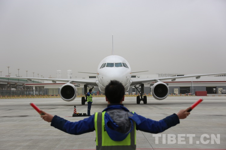 資料圖:一架飛機(jī)抵達(dá)拉薩貢嘎機(jī)場(chǎng)