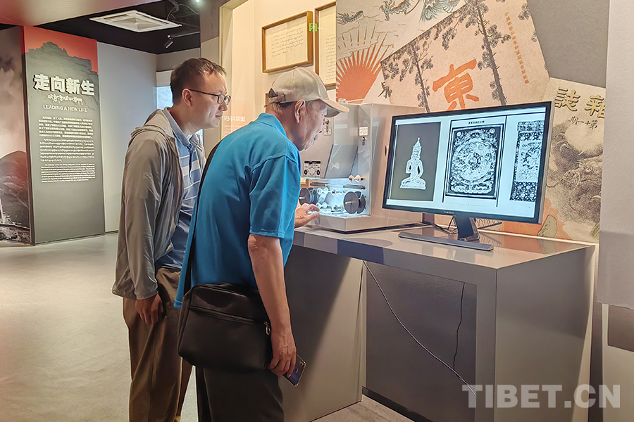 圖為紀(jì)念西藏江孜抗英保衛(wèi)戰(zhàn)120周年主題展現(xiàn)場,觀眾通過膠片機了解被英國劫掠的西藏文物 攝影:楊月云