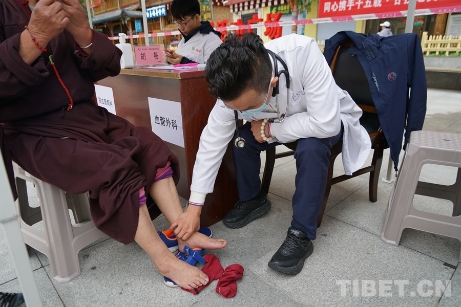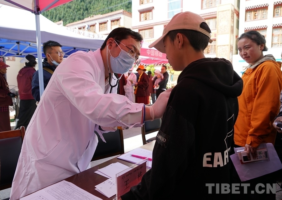 7月7日,“同心共鑄·情暖甘孜——‘同心·共鑄中國心’2024甘孜行”活動(dòng)走進(jìn)白玉縣,在縣城中心新時(shí)代文明實(shí)踐廣場(chǎng)開展義診活動(dòng)。來自清華大學(xué)附屬北京清華長庚醫(yī)院、首都醫(yī)科大學(xué)附屬北京安貞醫(yī)院、中日友好醫(yī)院、北京大學(xué)首鋼醫(yī)院、北京豐臺(tái)醫(yī)院等首都12家醫(yī)療衛(wèi)生機(jī)構(gòu)的23位醫(yī)療專家在現(xiàn)場(chǎng)為當(dāng)?shù)厝罕娞峁┝x診、咨詢、彩超檢查等醫(yī)療服務(wù),并免費(fèi)發(fā)放藥品。