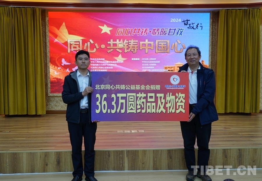 會(huì)議開始,與會(huì)人員一同觀看了“同心共鑄·情暖甘孜——‘同心·共鑄中國心’2024甘孜行”活動(dòng)直播。隨后,白玉縣委書記劉堰,專家團(tuán)團(tuán)長、清華長庚醫(yī)院神經(jīng)外科主任醫(yī)師王貴懷分別致辭?,F(xiàn)場還舉行了捐贈(zèng)儀式和授旗儀式。