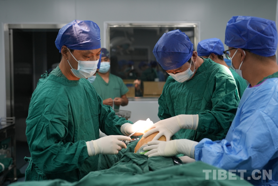 中國西藏網(wǎng)訊 2024年7月9日,在四川省甘孜藏族自治州巴塘縣人民醫(yī)院,“同心·共鑄中國心”醫(yī)務(wù)志愿者、北京積水潭醫(yī)院矯形骨科主任醫(yī)師李玉軍為一名患有膝關(guān)節(jié)病變的藏族患者實(shí)施了膝關(guān)節(jié)置換手術(shù)。