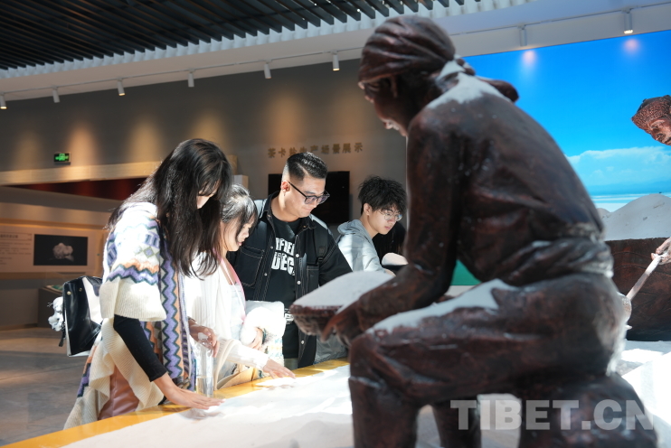 “茶卡”是藏語,意即鹽池。鹽是我們生活中最為常見之物,但直到來到茶卡鹽湖文化館,這些青少年們才發(fā)現(xiàn)自己所知有限。他們這才了解到,鹽這一日常餐桌上的尋常之物,其背后竟藏著一個多彩而豐富的世界。除我們熟悉的海鹽、湖鹽之外,巖鹽的堅硬、井鹽的深邃、竹鹽的清新,都以各異的姿態(tài)和色彩展現(xiàn)著自然界的奇妙多樣性。鹽的妙用也遠不止調(diào)味,還有清潔、消腫等多種功效。何莉莉聯(lián)想到自己生物課上所學(xué):“鹽里含有的多種氨基酸和微量元素,都是我們身體所需,對人類真的很重要。”