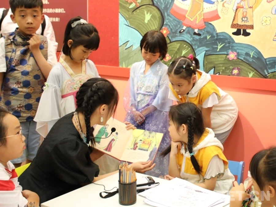 圖為開幕式后,導(dǎo)讀老師為孩子們講中華歷史故事 攝影:王茜