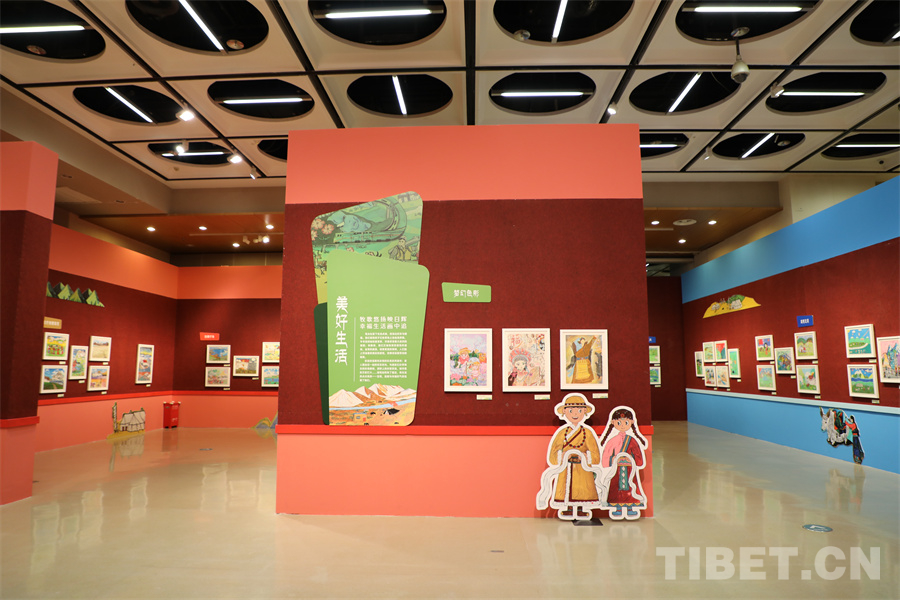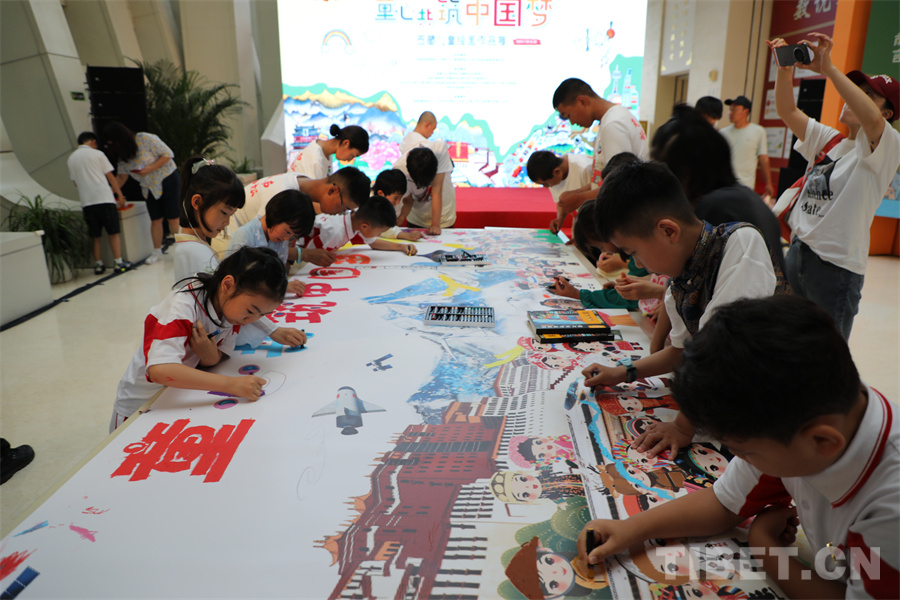 此次活動(dòng)邀請(qǐng)西藏、深圳、上海、北京等地400余名兒童圍繞“家園”“祖國(guó)”“生態(tài)”“未來”等題目創(chuàng)作了592幅作品,遴選出213幅展出。這些充滿生命色彩和奇妙想象的作品,圍繞西藏自治區(qū)在新時(shí)代的蓬勃發(fā)展,以確保國(guó)家安全和長(zhǎng)治久安、高質(zhì)量發(fā)展、保護(hù)生態(tài)環(huán)境以及強(qiáng)化邊疆建設(shè)為主旨,呈現(xiàn)了孩童心中璀璨絢爛的中國(guó)夢(mèng)。