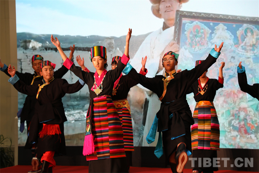 圖為開幕式上,來自西藏的繪畫作者為觀眾表演舞蹈 攝影:王茜