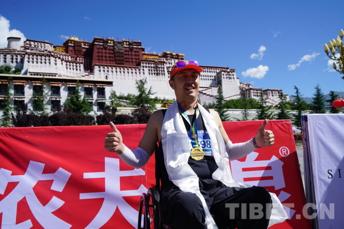 布達拉宮終點處人頭攢動,工作人員為每一位完賽選手獻上哈達、掛上獎牌,和選手們一起享受拉薩半程馬拉松挑戰(zhàn)完成的滿足與快樂。來自山東濟寧的任先振是本屆拉薩半程馬拉松唯一一位輪椅半程選手,他告訴記者,這一路他不僅沒有高反,且因為是自己參加過最高海拔的半程馬拉松而更加富有激情,在拉薩他感受到了許多來自藏族同胞的關心與溫暖,來到高原前他已經(jīng)報名了拉薩旅游團,他要去看看屬于雪域高原的美景。