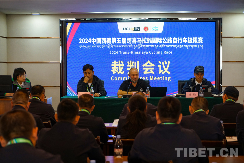 圖為托尼·安東尼在2024中國西藏第五屆跨喜馬拉雅國際公路自行車極限賽裁判會議上與裁判團(tuán)隊進(jìn)行溝通 攝影:馮重霖