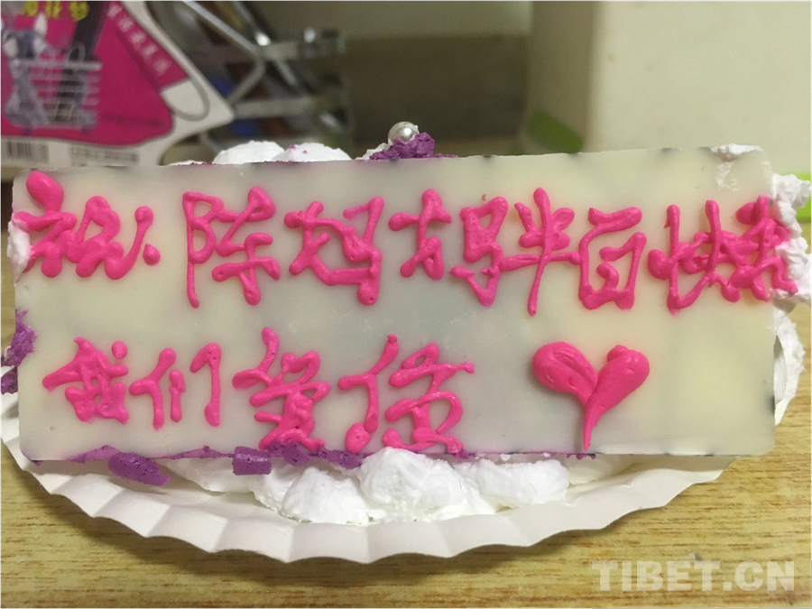 圖為同學(xué)們在給陳英姿老師的生日蛋糕上寫下祝福