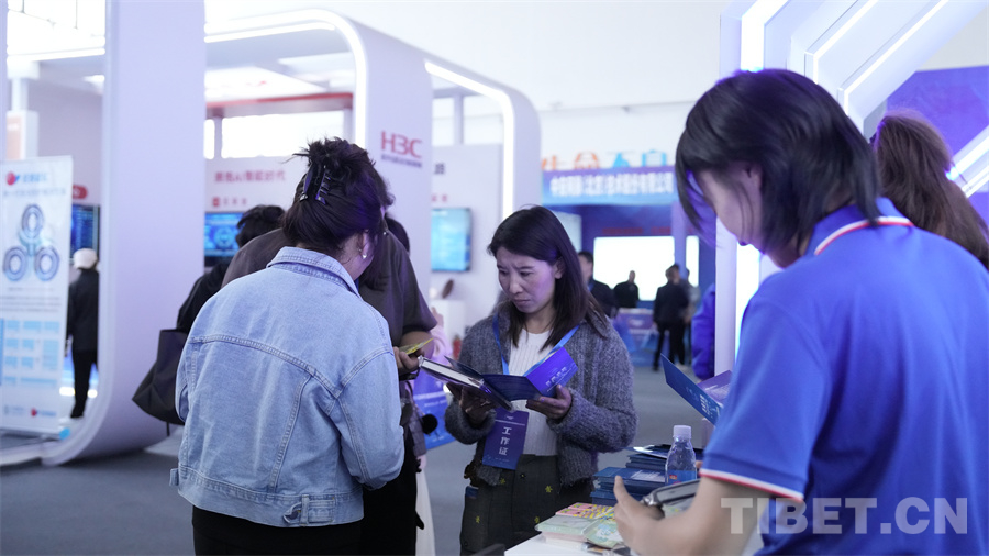 圖為市民在展覽點(diǎn)翻閱宣傳手冊(cè) 攝影:德吉卓瑪