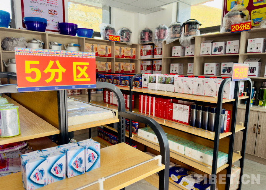 一進(jìn)入積分兌換超市,貨架上琳瑯滿目的商品吸引了記者的目光,貨架主要分為5分區(qū)、10分區(qū)、15分區(qū)和20分區(qū)。在5分區(qū)可以兌換到作業(yè)本、香皂、濕巾,10分區(qū)可以兌換到家庭裝的洗潔精和洗衣粉以及電源插排,15分區(qū)可以兌換到移動(dòng)電源、多功能探照燈、保溫杯和大包衛(wèi)生紙。想要兌換市場價(jià)上百元的電飯煲、高壓鍋、酥油打茶機(jī)也不是難事,只需要20積分,就可以輕松兌換。