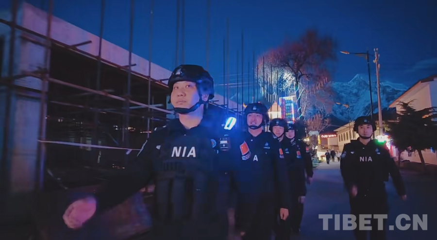 圖為派邊境派出所移民管理警察正在開(kāi)展夜間巡邏 圖片由西藏邊檢總站提供
