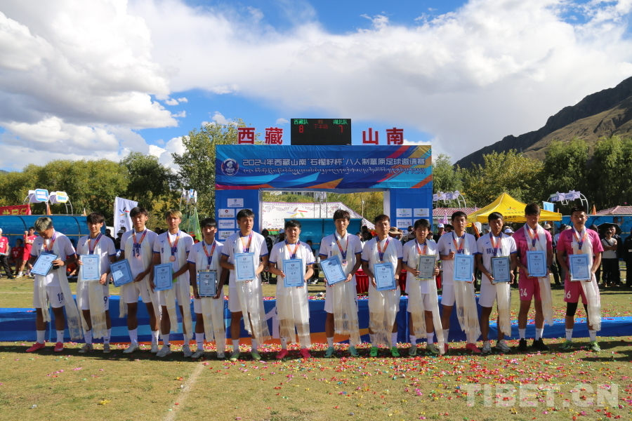 在為期8天的比賽中,來自湖北、湖南、四川、貴州、云南、陜西、青海、西藏、西藏山南的162名運動員,以頑強拼搏的意志、團結(jié)協(xié)作的精神,奏響雪域高原上的民族團結(jié)協(xié)奏曲。經(jīng)過激烈角逐,西藏自治區(qū)代表隊獲得2024年西藏山南“石榴籽杯”八人制草原足球邀請賽冠軍,湖北省代表隊獲得亞軍,陜西陜安足球俱樂部獲得季軍。