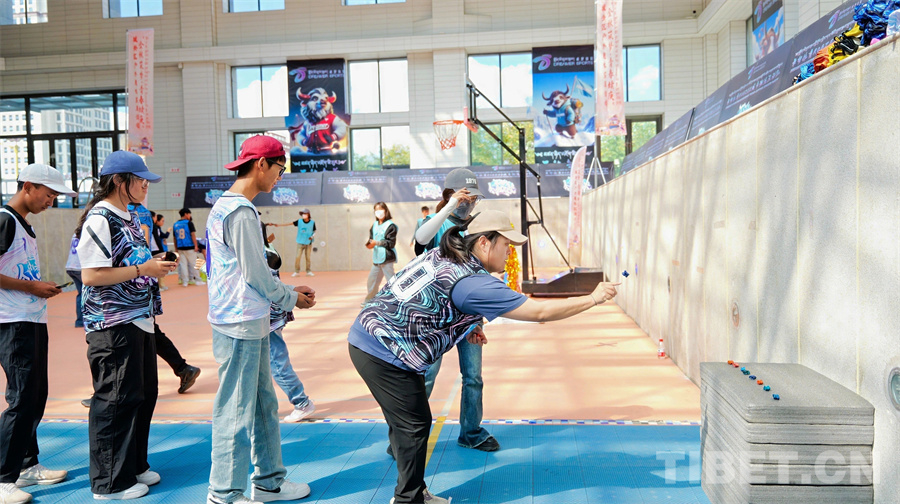 “投壺是中國古代宴飲時(shí)做的一種投擲游戲,也是一種禮儀。愛看古裝劇的人應(yīng)該都在影視作品里看過,這是一個(gè)由游戲者輪流站在離壺一定距離的地方,用手把箭投向壺中并計(jì)算得分的游戲。”“打牛角和阿久(羊拐)是一項(xiàng)流傳至今的西藏古老民間傳統(tǒng)體育活動(dòng),具有很強(qiáng)的娛樂性、趣味性和技巧性,能夠鍛煉身體,還能給我們帶來參與其中的快樂……”每項(xiàng)活動(dòng)開啟前,晉美次旦向現(xiàn)場參與人員一一講解這項(xiàng)運(yùn)動(dòng)的由來以及發(fā)展現(xiàn)狀,大家聽得十分認(rèn)真,隨后又積極參加各項(xiàng)活動(dòng)?;顒?dòng)現(xiàn)場熱鬧非凡、歡聲笑語不斷,營造了濃厚的健身氛圍。