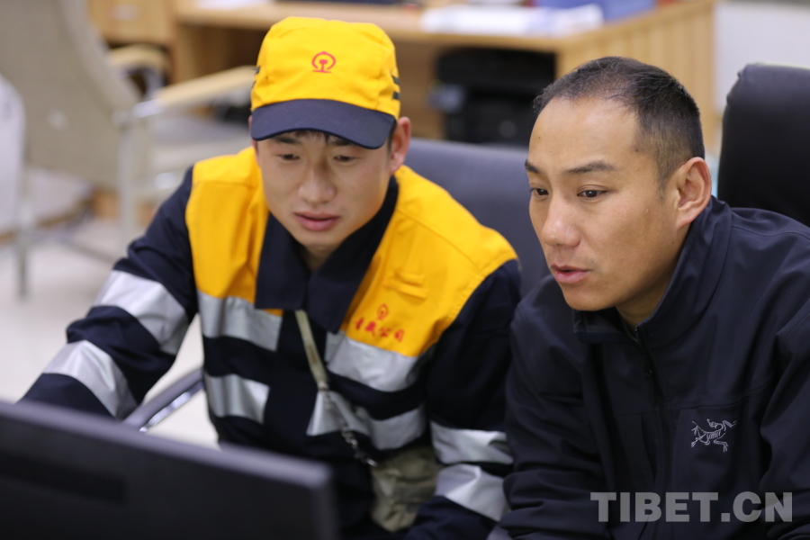 圖為拉薩火車(chē)站青年職工張雪峰(左) 攝影:格桑央金