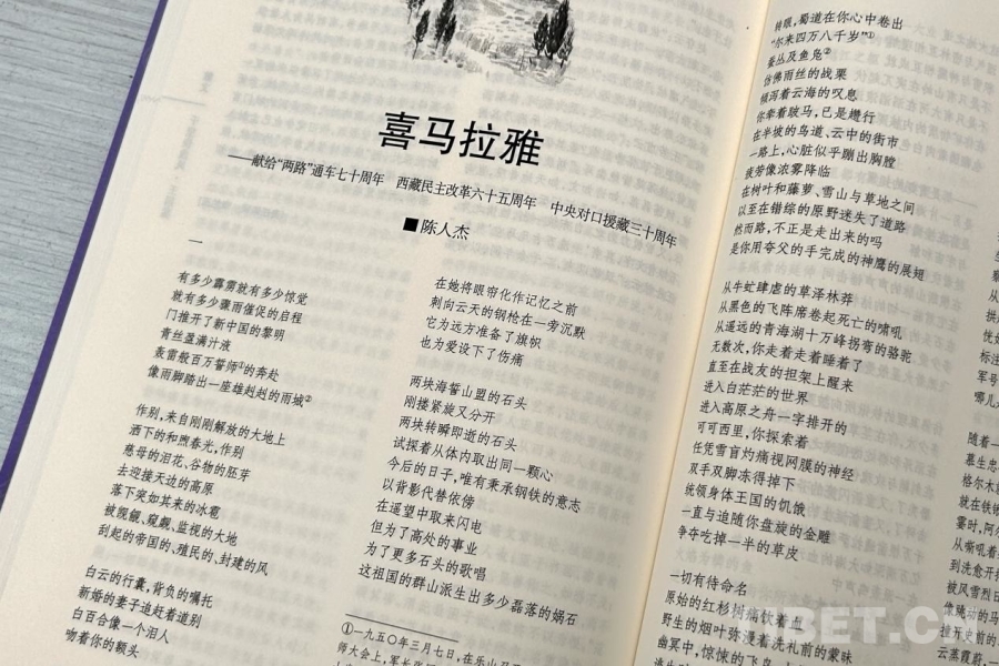 從地理喜馬拉雅到“千行詩”《喜馬拉雅》,第八屆魯迅文學獎獲得者、西藏自治區(qū)文聯(lián)副主席,同時也是本詩創(chuàng)作者陳人杰感慨萬千。創(chuàng)作這首凝練了“兩路”通車70周年、西藏民主改革65周年、中央對口援藏30周年歷史性事件,涵蓋了西藏前世今生到新時代西藏變化的長詩,并非易事。歷經(jīng)文思淤堵、無從下筆,到靈光乍現(xiàn)、一氣呵成,陳人杰表示:“《喜馬拉雅》的出爐,是天時地利人和,是新時代新征程的使然,是西藏的饋贈,是眾水般心靈澄澈的力量匯聚起的浩蕩的贊歌?!?/p>