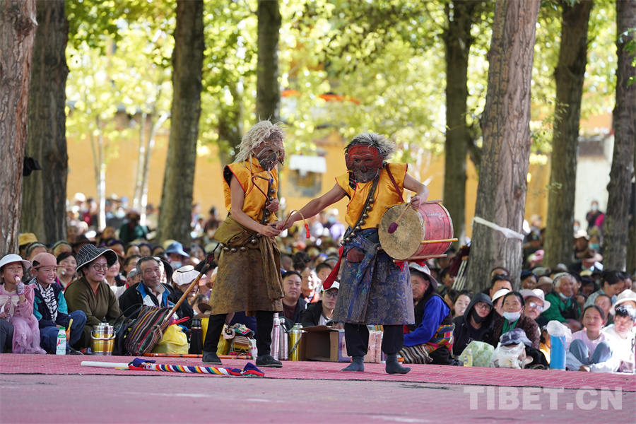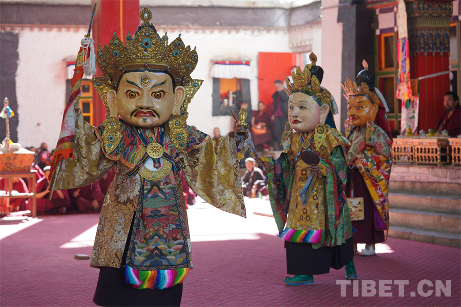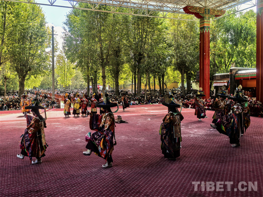 中國西藏網(wǎng)訊 在今年國慶假期里,位于尼色日山腳下的西藏日喀則市扎什倫布寺上演了3天精彩紛呈的“色莫欽姆羌姆”,吸引了眾多當(dāng)?shù)厝罕姾陀慰颓皝碛^賞。