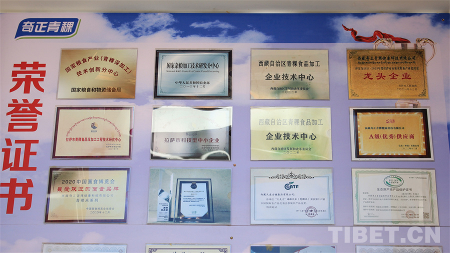 圖為奇正青稞獲得的部分榮譽 攝影:馮重霖