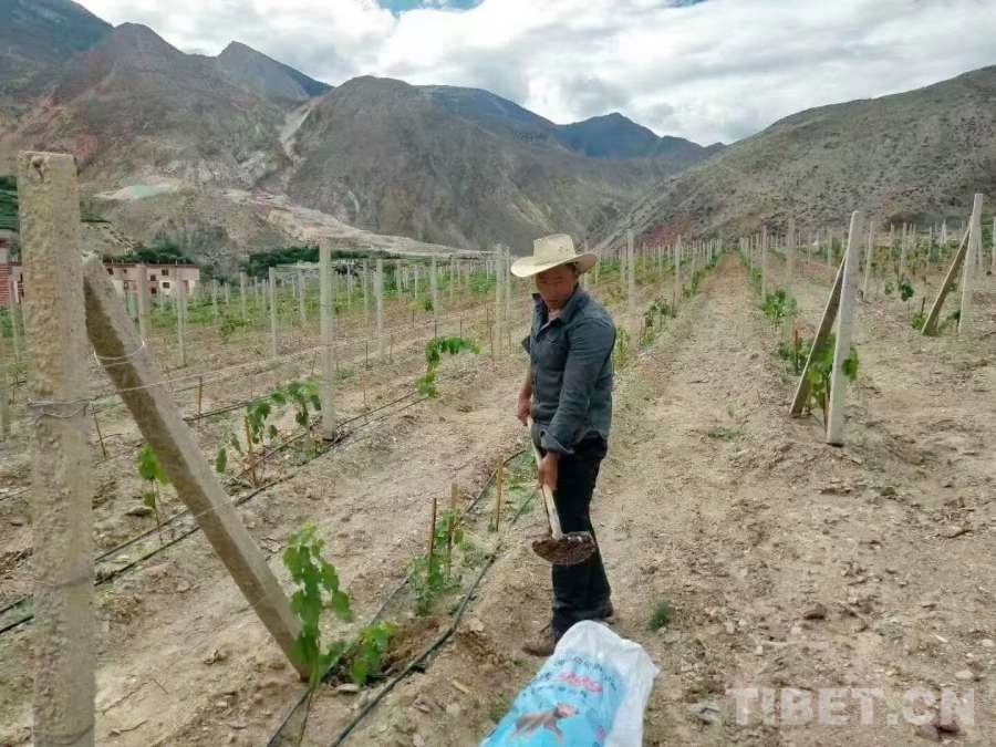 在風(fēng)景如畫的八宿縣林卡鄉(xiāng)孜嘎村,有一片占地面積200畝的葡萄種植基地,也是昌都市海拔最高的葡萄種植基地。2016年,八宿縣計劃建立葡萄種植基地,來自芒康縣納西民族鄉(xiāng)的次成江措在項目中標后成為該基地的負責(zé)人。在次成江措的家鄉(xiāng)芒康,種植葡萄已經(jīng)有200多年的歷史。從小耳濡目染,使他成為遠近聞名的葡萄種植專家。剛接到這個項目時,由于對八宿縣地理環(huán)境不甚了解,次成江措內(nèi)心并沒有十足的把握。隨后,他從家鄉(xiāng)帶來優(yōu)質(zhì)葡萄品種“黑珍珠”,驚喜地發(fā)現(xiàn)得益于八宿縣海拔較高、紫外線充足、降雨量較少的優(yōu)勢條件,“黑珍珠”的生長情況超出了他的預(yù)期,甚至不需要使用農(nóng)藥?! ?/p>