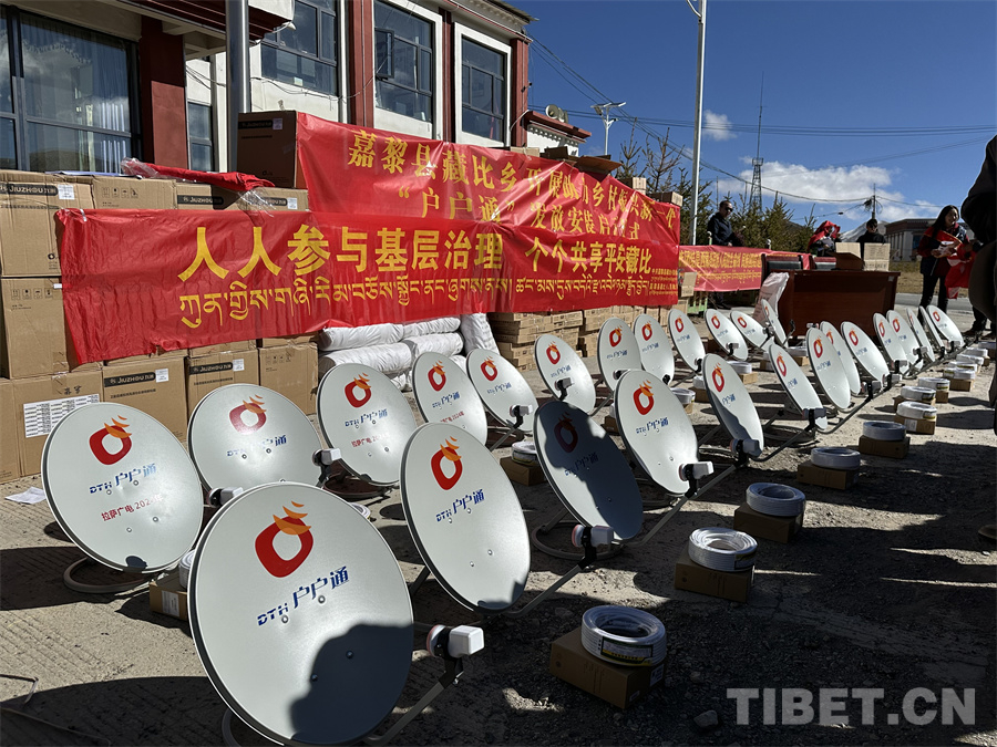 圖為藏比鄉(xiāng)“戶戶通”設(shè)備發(fā)放儀式現(xiàn)場