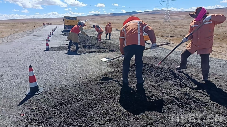 受低溫限制,唐古拉山路段的油路養(yǎng)護(hù)季節(jié)性非常強(qiáng),每年的5至10月是養(yǎng)護(hù)的黃金時(shí)間。為了能在有限的時(shí)間內(nèi)更好地養(yǎng)好公路,每年這個(gè)季節(jié),我和工友們都要在凌晨四五點(diǎn)出發(fā),一絲不茍地進(jìn)行日常巡查,對(duì)破損的路面進(jìn)行及時(shí)修補(bǔ)。每天工作超過十個(gè)小時(shí),餓了吃些糌粑,渴了喝點(diǎn)酥油茶,累了就靠在車上休息一會(huì)兒。春天,我們處理路面裂縫;夏天,我們清理塌方;冬天,我們與冰雪戰(zhàn)斗。我們?nèi)硇耐度?,用青春和汗水守護(hù)這條公路,確保這條至關(guān)重要的運(yùn)輸動(dòng)脈能夠抵御極端惡劣氣候的考驗(yàn),讓每一輛過往車輛都能安全順暢通行。