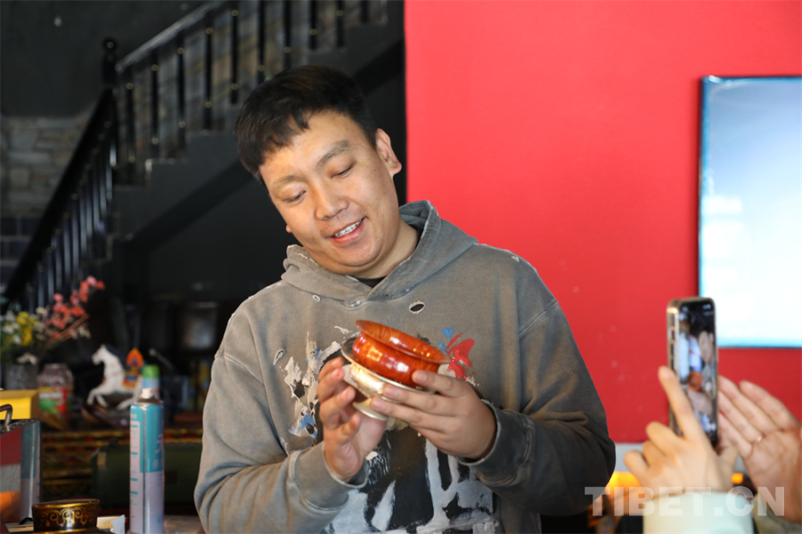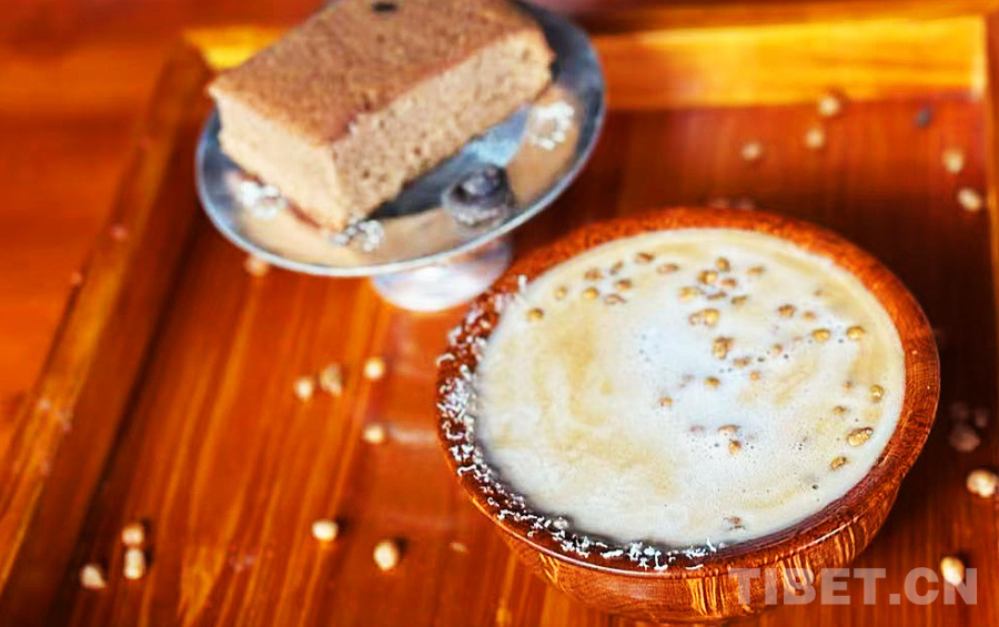 在濃郁的咖啡液里注入青稞奶,撒上當?shù)禺a(chǎn)的酸酸的奶渣和青稞?!煌胂銤獾目Х韧瓿闪?。是的,是“一碗咖啡”,索朗群培專門選用了藏族群眾喜愛的傳統(tǒng)木碗用作咖啡杯。