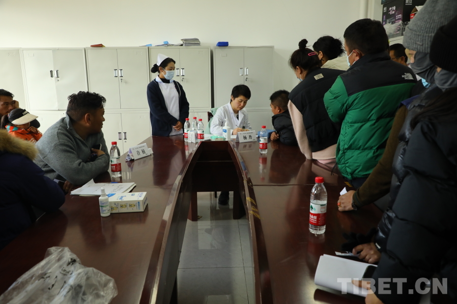 圖為協(xié)和醫(yī)院的醫(yī)生們正在為當?shù)匕傩湛丛\ 攝影:莫干措