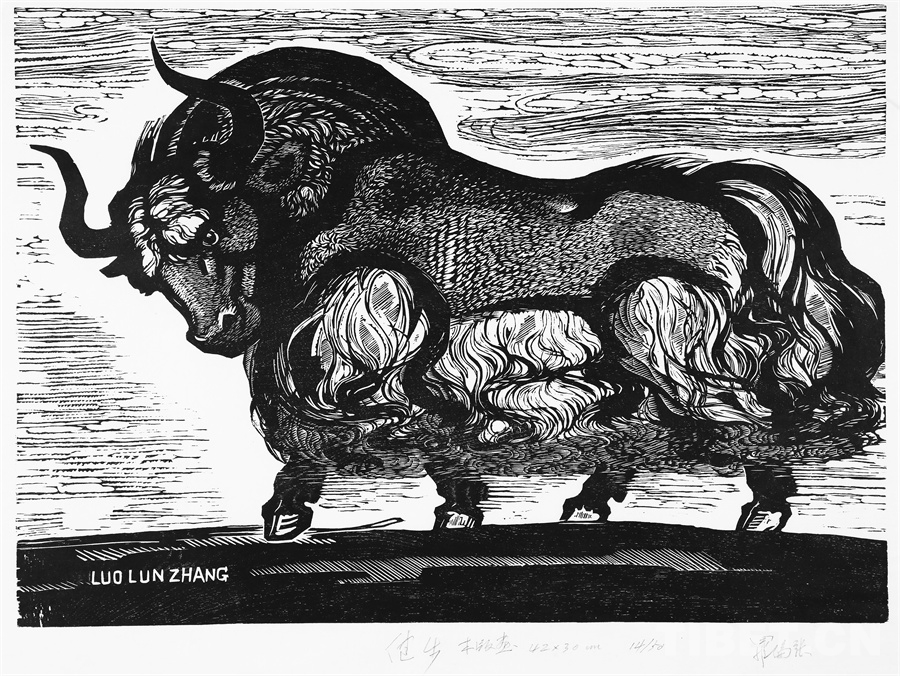 如果非要說我在版畫技法上有什么創(chuàng)新,參照西藏匠人刻經(jīng)文,在石頭上刻出來然后印出來也許就算。這不是一般石版畫概念,那叫石印,平版印刷;我這是凹版印刷??唐饋砗苜M勁,我也不管費不費勁。我有一批這樣的石刻作品。綜合版作品手法較多,我通常分別在石板和木板上刻,然后套起來印。如果搞學術交流,也許值得一談。至于說到創(chuàng)新,第一我不認為我有什么創(chuàng)新,第二我不認為在藝術上、在美術上能夠輕易談創(chuàng)新這個詞。還有第三個觀點:不需要創(chuàng)新。很簡單,你先把傳統(tǒng)學到手再說。既是傳統(tǒng),就有它的存在理由,否則早就夭折了,還傳什么統(tǒng)呢?傳,而且統(tǒng)?。〗y(tǒng)是什么意思?基調(diào)是它統(tǒng)一起來的。先把傳統(tǒng)學到手,爐火純青了,神來之筆出現(xiàn)了,才有可能有所創(chuàng)造?;A是重要的。