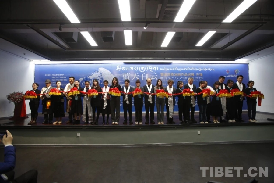 圖為來(lái)自西藏自治區(qū)和江蘇省無(wú)錫市的嘉賓為展覽開(kāi)幕剪彩