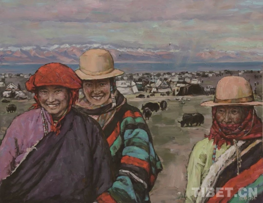 圖為“藍(lán)天白云——雪域高原油畫(huà)作品巡展”作品《桑嘎古多》(50x70cm 布面油畫(huà))作者:扎西次仁