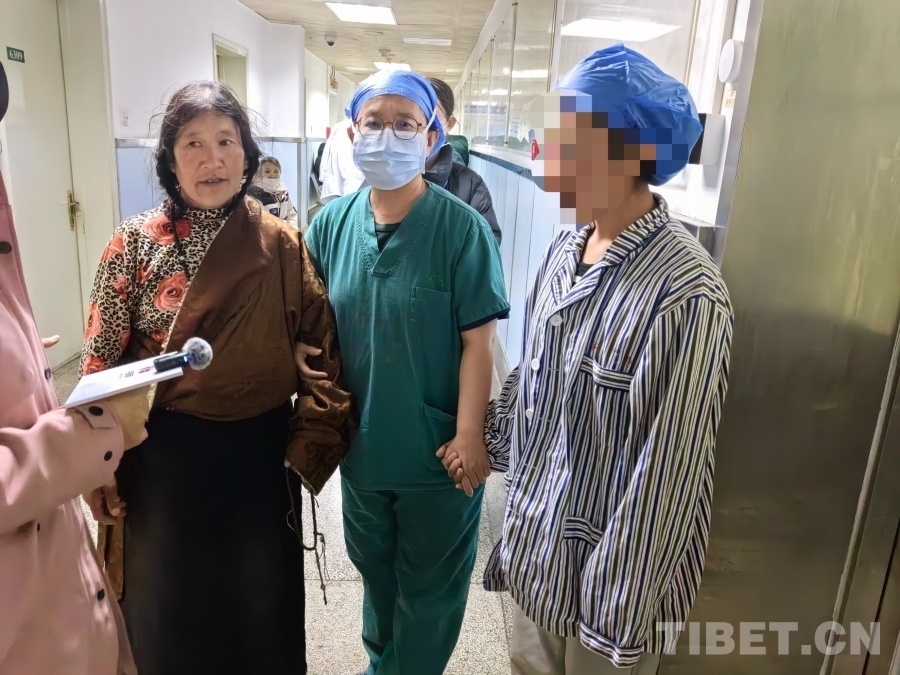 圖為手術剛剛結束后,卓瑪的媽媽與卓瑪和醫(yī)生交流 攝影:王帥