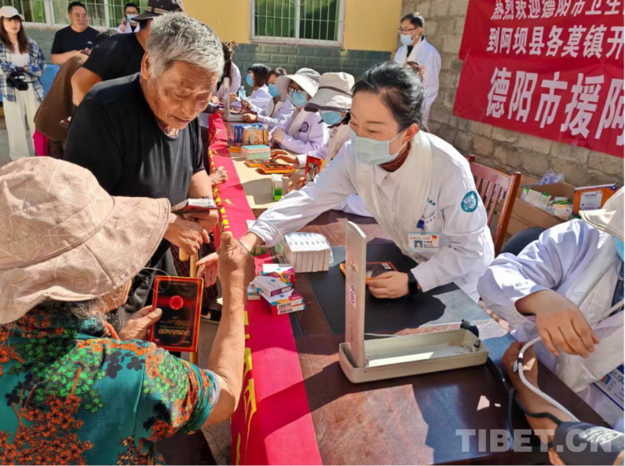 圖為德陽援藏醫(yī)療隊員和若爾蓋當?shù)厝罕姾嫌啊∈茉L者供圖