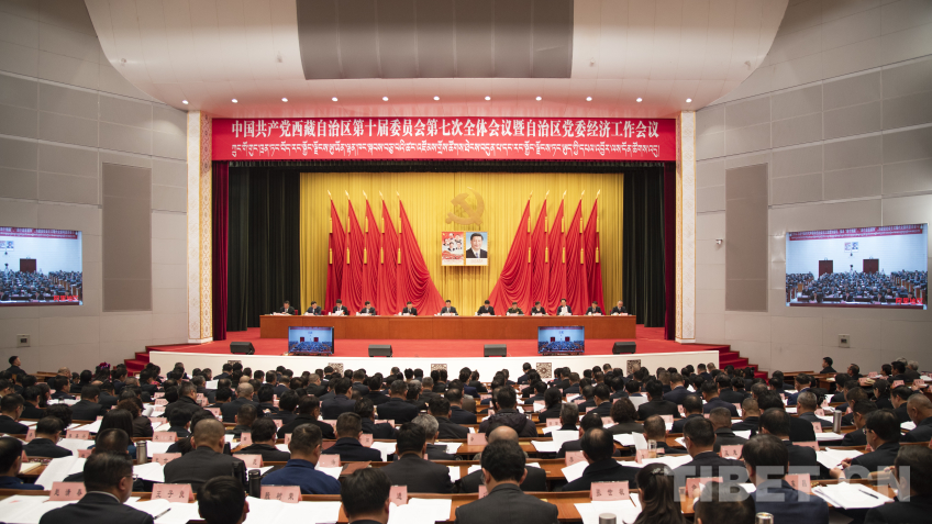 圖為中國(guó)共產(chǎn)黨西藏自治區(qū)第十屆委員會(huì)第七次全體會(huì)議暨自治區(qū)黨委經(jīng)濟(jì)工作會(huì)議現(xiàn)場(chǎng) 攝影:趙振宇