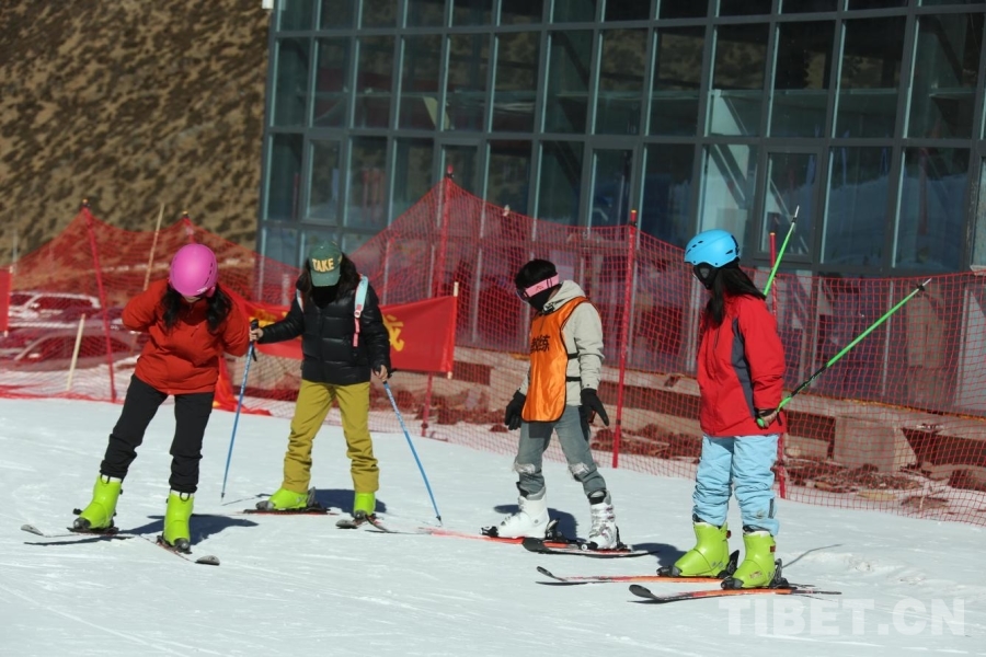 圖為活動(dòng)參與者在拉薩日多滑雪場(chǎng)體驗(yàn)冰雪運(yùn)動(dòng)。攝影:德吉卓瑪