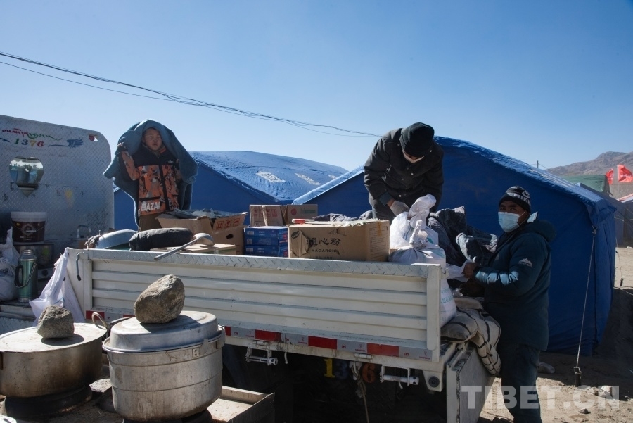 圖為森嘎村受災(zāi)安置點(diǎn)群眾正在盤點(diǎn)家中物資 攝影:趙振宇