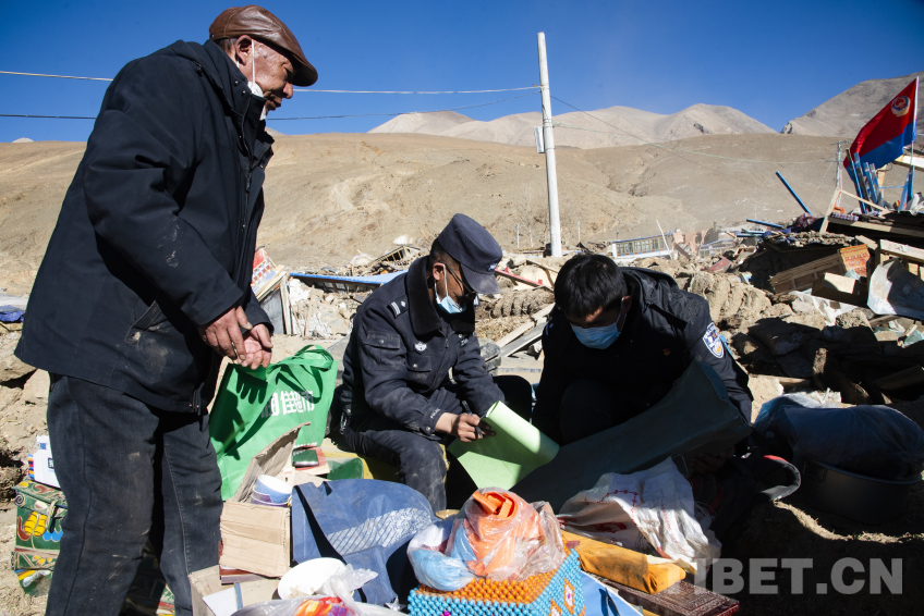 在坍塌房屋面前,救援隊伍排成一列,小心翼翼地傳遞著從受災群眾家里轉(zhuǎn)移出來的財產(chǎn)。一包牛肉干、一袋青稞面、一只老木箱,無論物資體積大小,救援人員都把它們當作自己家的東西一樣珍惜,在受災群眾確認后由公安干警在現(xiàn)場登記并返還給受災群眾。