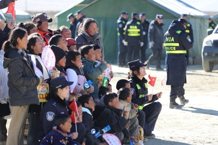 中國西藏網訊 1月10日,是西藏定日縣地震發(fā)生后的第4天。一大早,西藏自治區(qū)日喀則市定日縣長所鄉(xiāng)雜村安置點的移民管理警察就開始忙活起來,他們要和安置點的孩子們一起度過一個難忘的警察節(jié)。