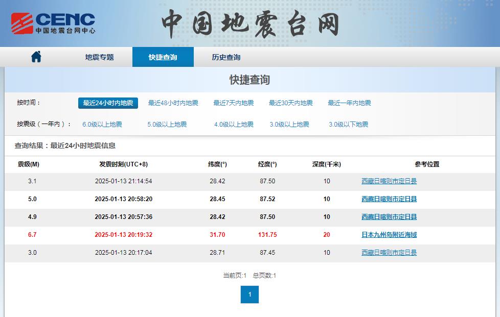 據(jù)中國地震臺網(wǎng)發(fā)布的數(shù)據(jù),這4次地震分別是: