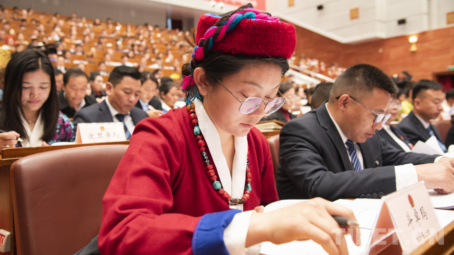 圖為西藏自治區(qū)人大代表聆聽(tīng)西藏自治區(qū)高級(jí)人民法院工作報(bào)告 攝影:趙振宇