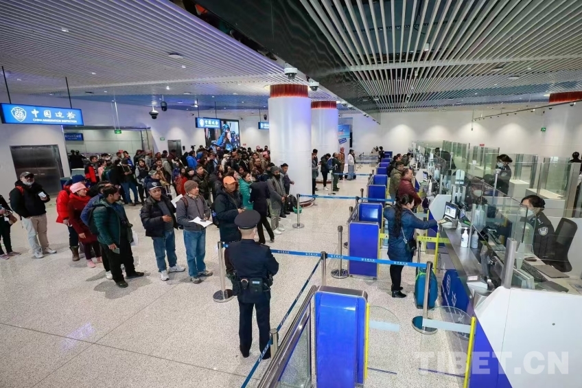 圖為拉薩至尼泊爾加德滿(mǎn)都國(guó)際航線(xiàn)正式復(fù)航通關(guān) 攝影:蔣美靈