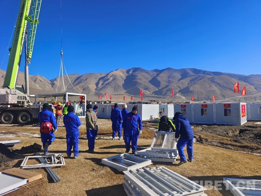 1月8日,集團班子成員、各部門、各下屬企業(yè)負責人召開抗震救災(zāi)動員部署會議。得知當?shù)丶毙璋宸堪惭b人員,集團公司緊急調(diào)配人力,組建了由34人組成的志愿突擊隊趕赴定日災(zāi)區(qū),在9天的時間里,完成了687間板房的搭建和電力維修等工作。