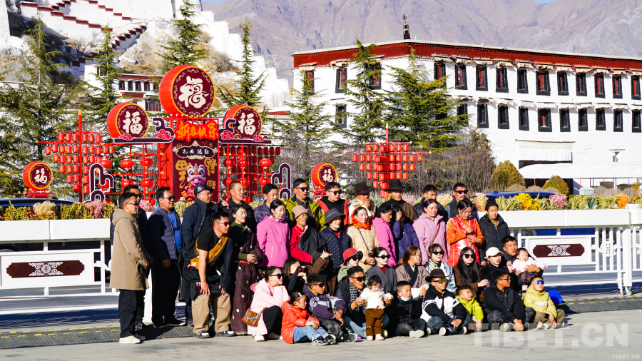圖為市民在布達(dá)拉宮廣場(chǎng)拍攝新春全家?!z影:趙振宇
