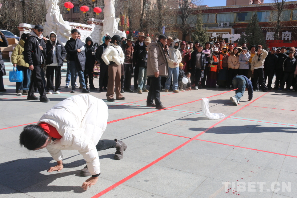 “加油,加油!”歡呼聲不絕于耳,在廣場(chǎng)中央的趣味民俗體育區(qū)域,縣教育體育局舉辦了民族傳統(tǒng)體育項(xiàng)目“格吞”(藏式拔河)和“翻山越嶺”障礙賽、“袋鼠跳”接力賽、踢毽子等豐富多樣的比賽項(xiàng)目,三百多名圍觀群眾踴躍報(bào)名,分組參與,盡情體驗(yàn)體育活動(dòng)帶來(lái)的歡樂(lè)和激情。