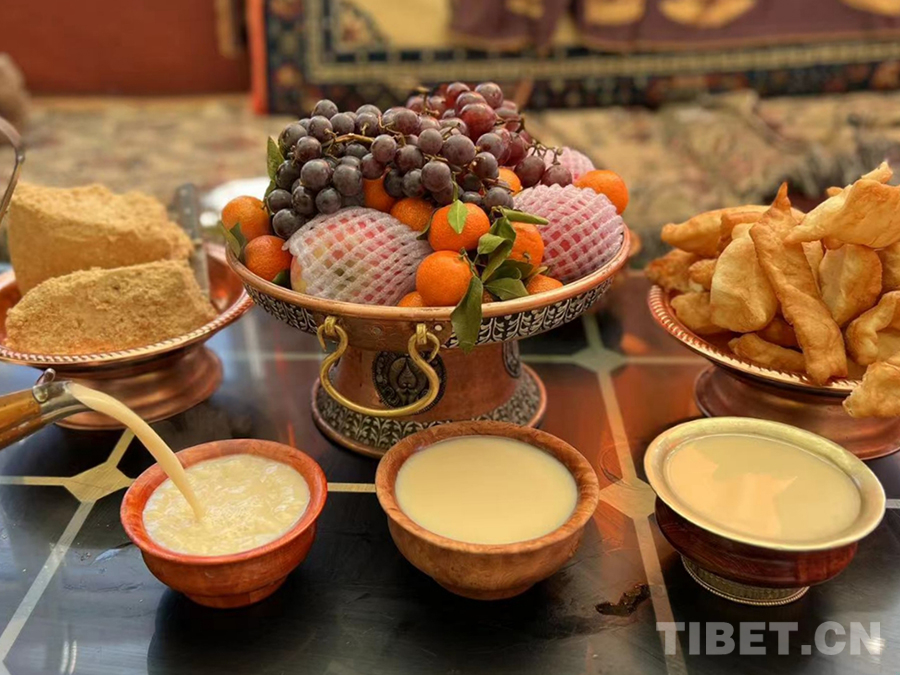 圖為桌上擺放著卡塞、酥油茶等 攝影:扎西央措