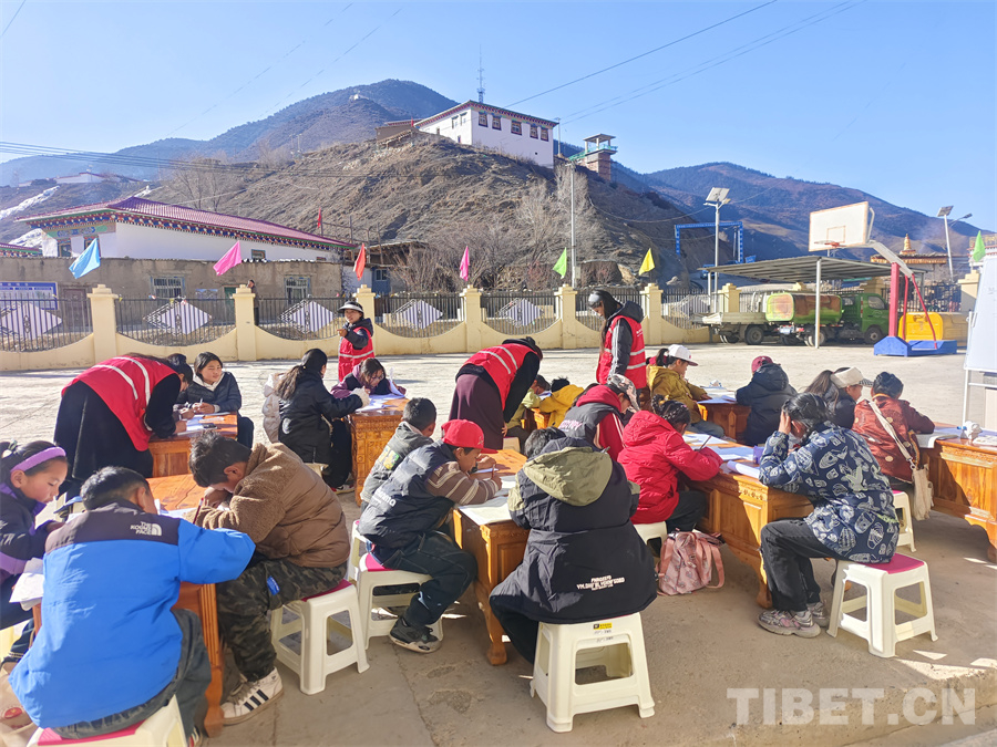 圖為西藏洛隆縣組織返鄉(xiāng)大學(xué)生對(duì)孩子們進(jìn)行針對(duì)性輔導(dǎo)