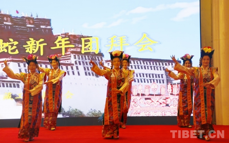 隨著拉薩城關(guān)區(qū)娘熱民間藝術(shù)團(tuán)的歌舞表演開始,《祝?!窐?lè)聲悠揚(yáng),團(tuán)拜會(huì)正式拉開帷幕。“老班長(zhǎng)”葉鵬穿上自己的綠軍裝重新演繹民族團(tuán)結(jié)與軍民深情的經(jīng)典歌舞《洗衣歌》;青少年學(xué)生們和著優(yōu)美的旋律,以歡快的舞步跳起《崗巴拉姆》,點(diǎn)燃了現(xiàn)場(chǎng)氣氛;一級(jí)演員劉媛媛演唱的《五星紅旗》《國(guó)家》飽含深情,北京首都軍之魂合唱藝術(shù)團(tuán)的大合唱《共筑中國(guó)夢(mèng)》《走向復(fù)興》慷慨激昂,表達(dá)了大家對(duì)祖國(guó)的熱愛……還有悠揚(yáng)的扎木念表演、男聲獨(dú)唱等節(jié)目豐富精彩。大家在歡聲笑語(yǔ)中共同感受著節(jié)日的喜悅,共同祝愿西藏在新的一年里再創(chuàng)輝煌,共祝西藏各族人民幸福安康,羅薩扎西德勒。(中國(guó)西藏網(wǎng) 記者/王茜 實(shí)習(xí)生/扎西央措)