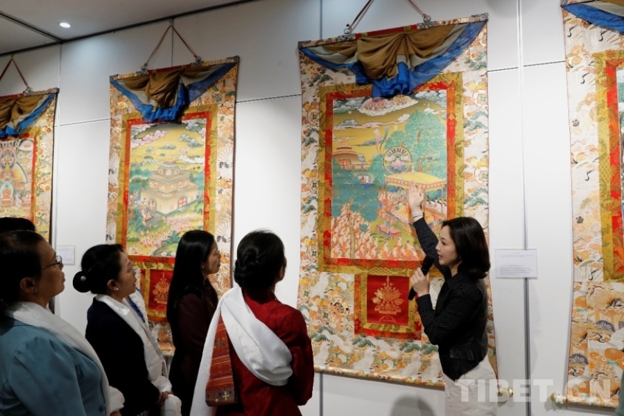 圖為“一眼千年——中國唐卡繪畫中的睦鄰美善”展覽現(xiàn)場 康卓供圖
