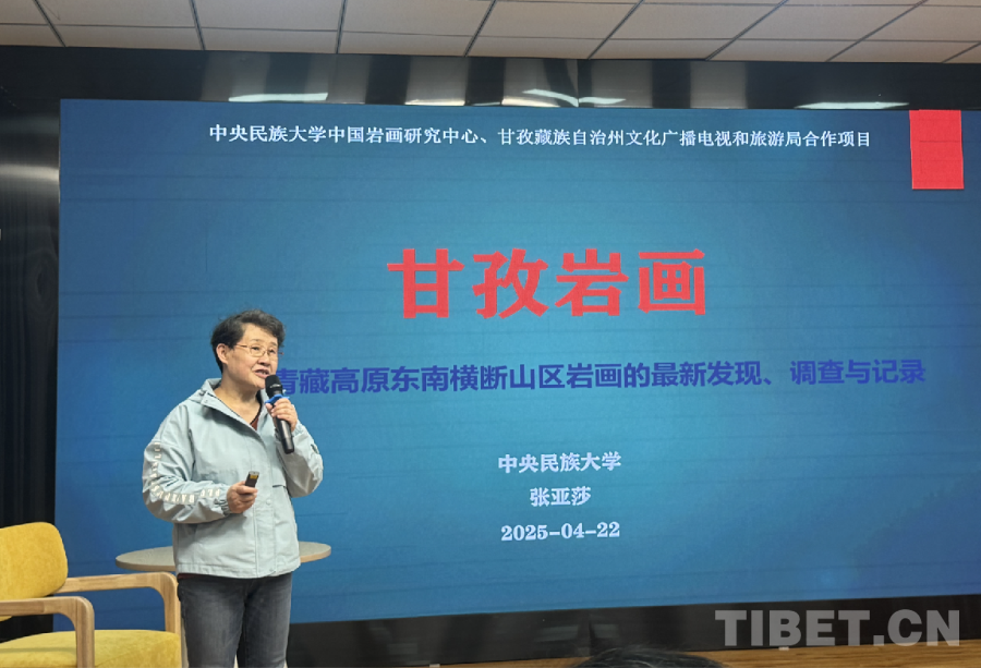 圖為《甘孜巖畫》主編、中央民族大學中國巖畫研究中心教授張亞莎作分享