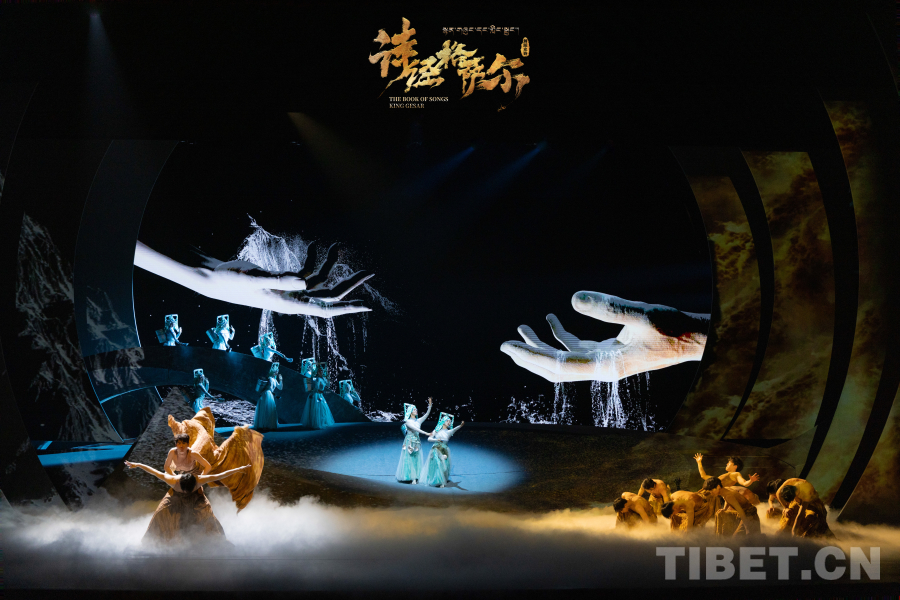 這部融合了《詩經(jīng)》與《格薩爾》兩大文化瑰寶的劇目,以中原地區(qū)最古老的詩歌總集《詩經(jīng)》和目前世界上最長的史詩《格薩爾》為藍(lán)本,創(chuàng)作出一部瑰麗雄壯且充滿想象力的作品,將深厚的中華文明精粹進(jìn)行了精巧融合和詩意表達(dá)。創(chuàng)作過程中,《詩經(jīng)》和《格薩爾》兩部作品中相同、相似、接近的圖騰、樂器、歌舞、生活習(xí)性等文化元素被巧妙串聯(lián)起來,以“同、融、美”為意象連接點(diǎn),通過數(shù)字手段打造的絕美舞臺(tái)效果,真正實(shí)現(xiàn)了“美美與共”。